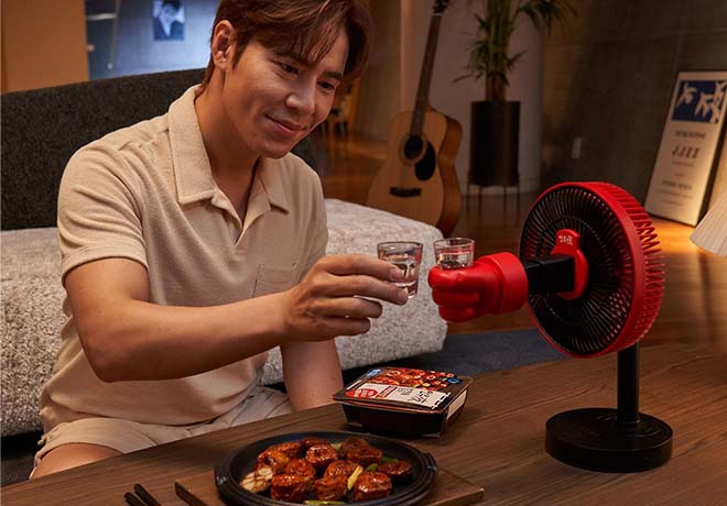 탁상용 선풍기에 술잔을 들고 있는 손 모양을 구현하고, 선풍기의 회전 기능을 활용해 혼술족들도 유쾌하게 건배를 하며 외로움을 달랠 수 있도록 했다. 선풍기의 시원한 바람으로 여름철 무더위를 달래주는 장점도 있다.