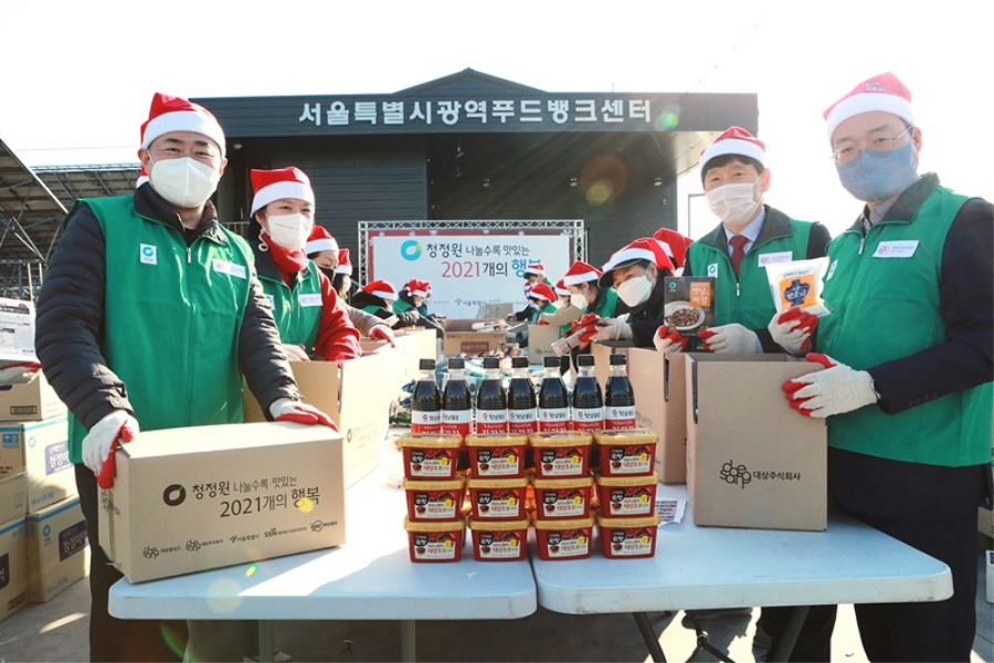 대상㈜이 8일 서울 성동구에 위치한 서울잇다푸드뱅크센터에서 ‘청정원 나눌수록 맛있는 2021개의 행복’ 나눔 행사를 진행했다고 밝혔다.